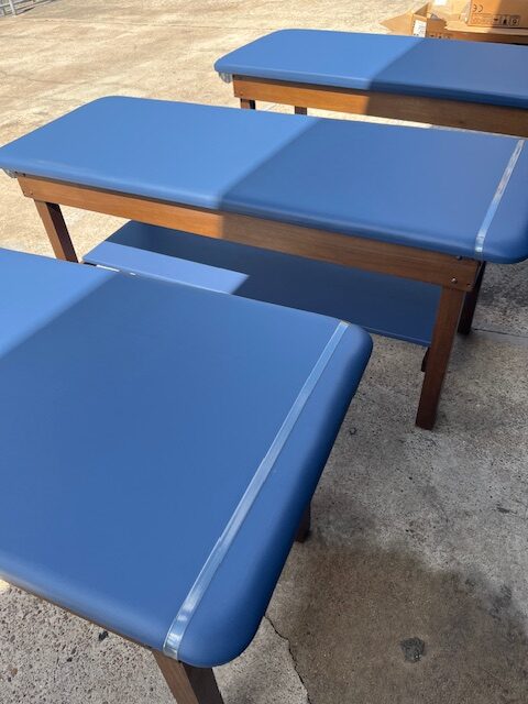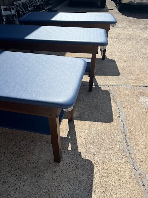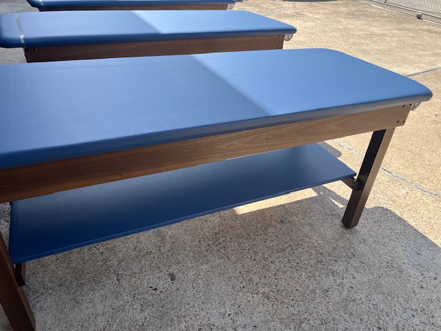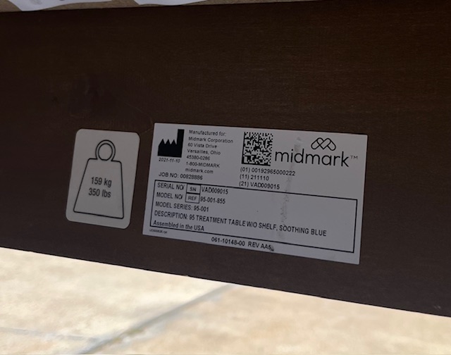 New out of the box. Assembled. In good condition. Paper holder included. Shown as is. 1 left in stock. Request delivery or freight quote. Upholstery original from Midmark: Blue