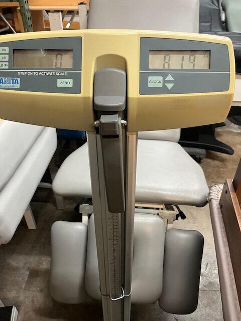 Pre-owned Digital Scale. In good working condition. Power adapter included if available. Powers with standard AA batteries. Shown as is. 2 in stock. Request delivery or freight quote. Tanitha Digital Scale with height rod.