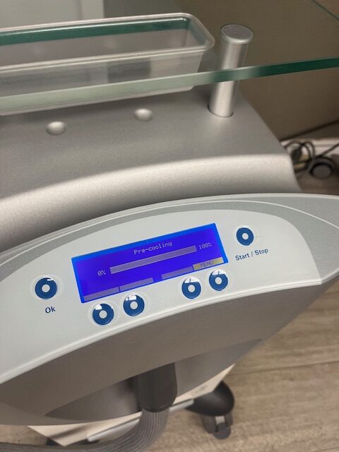 Unlike other cooling methods, such as contact cooling, cryogen spray or ice packs, the Cryo 6 decreases the skin temperature quicker, with less risk of skin burns and keeps a constant dosage throughout the entire treatment time.